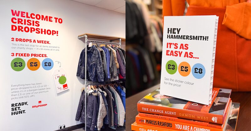 “Crisis Dropshop is about unlocking the full potential of every donation. By giving great pieces another chance to be worn and loved, we’re reducing waste, making sustainable fashion more accessible, and raising vital funds to end homelessness. This new concept brings real energy to both Hammersmith and to our network of shops – it’s bold, playful and welcoming. Thanks to the creativity and commitment from Dalziel & Pow, we’re thrilled with the end result.” Kim Collins, Director of Retail, Crisis.