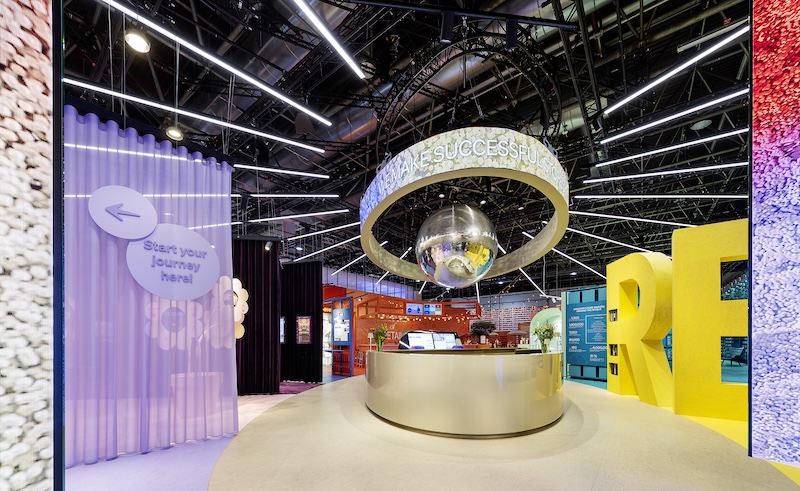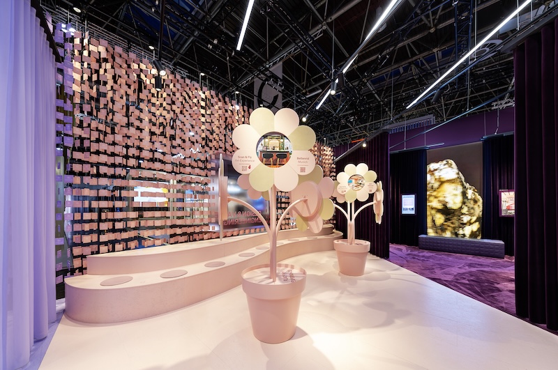 The journey continues to an interactive pink flower meadow that brings the principle of ‘experiencing rather than just observing’ to life. Brand and store concepts become oversized floral installations, while digital touchpoints and augmented reality invit e visitors to immerse themselves and browse – allowing them to become part of the staging themselves.