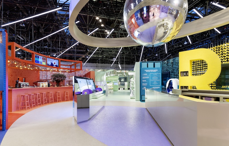 Inside, the Experience Route leads deep into the creation of emotional brand worlds, while the Efficiency Route draws attention to scalable, practical solutions for modern retail and brand spaces. Both routes are grouped radially around the central arrival and information area, which in turn is divided into a total of ten themed areas, like pieces of a large retail cake. These present the entire spectrum of solutions offered by umdasch The Store Makers and bring the ‘Colours of Retail’ to life as a vibrant journey.