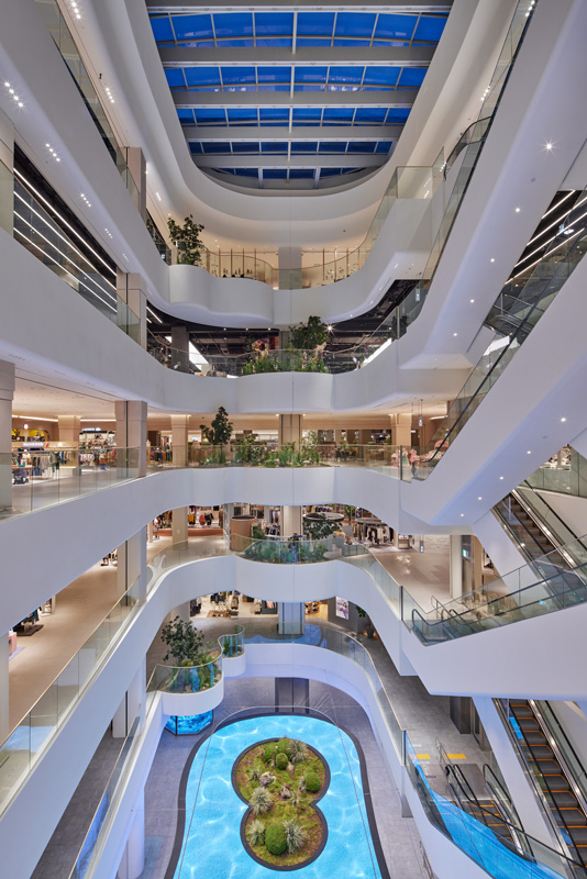 Dedicated to women’s contemporary fashion and hosting local, premium brands curated for the Lotte customer. The retail space opens out onto a large terrace, the first Lotte designed outdoor space, with flowing grasses, hidden sanctuaries and sculptures. Shed brought the outside world in by connecting retail and terrace landscapes though the use of natural materials and forms, all reimagined through a luxury lens. The result is a natural haven of luxury retail for the modern mindset of the Dongtan women.