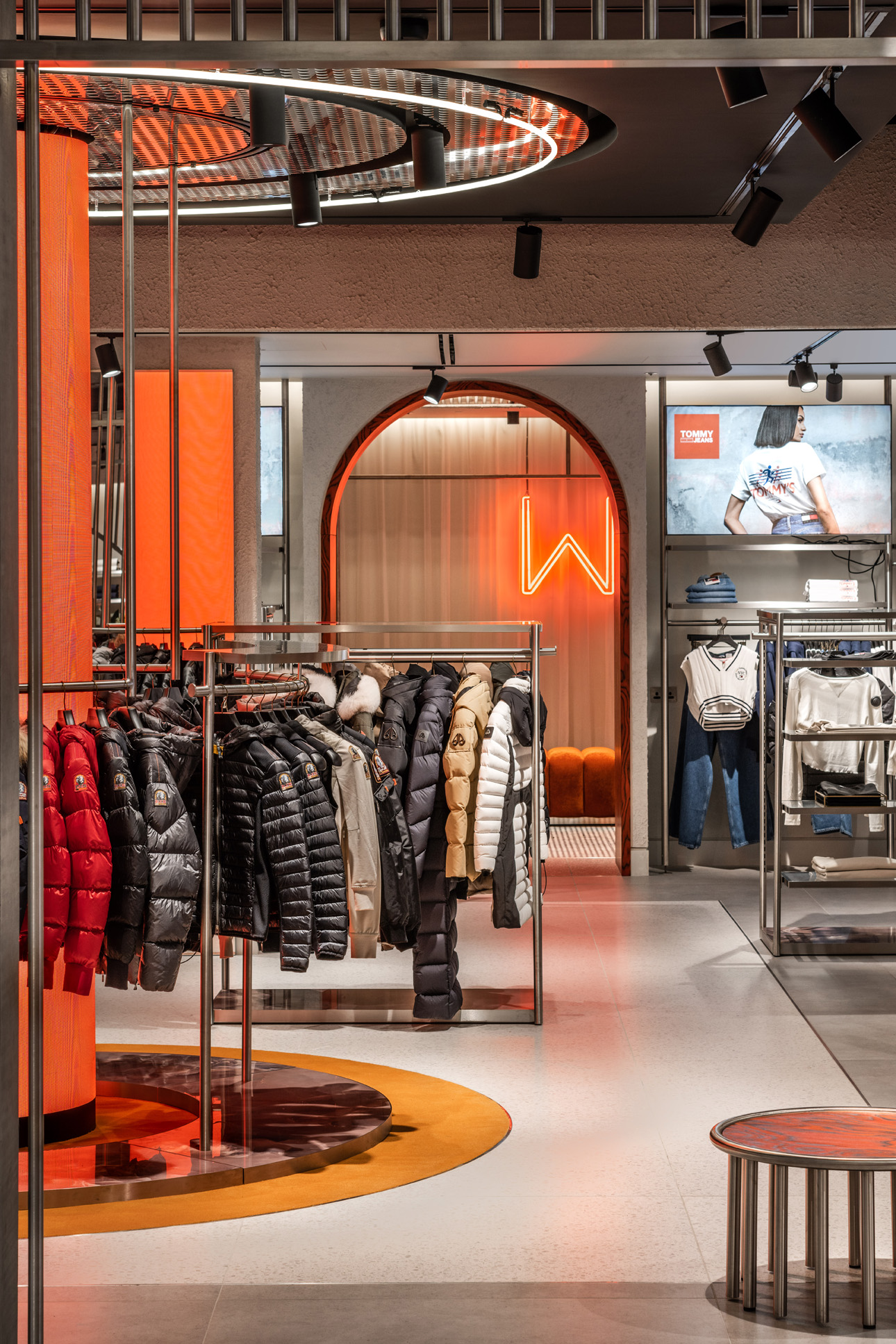 Men’s and Women’s fitting rooms are situated to the rear corners of the floor and continue the feel of a premium space, with dedicated VIP rooms for top-tier customers.
